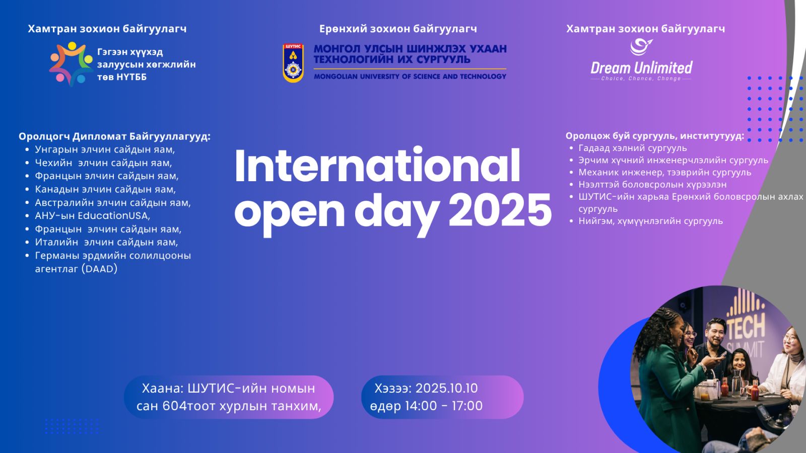 Оюутан залуус, профессор багш та бүхнийг "International Open Day" өдөрлөгт хүрэлцэн ирэхийг урьж байна.