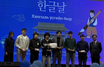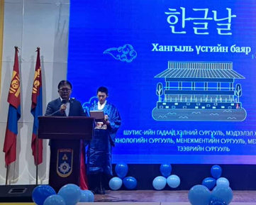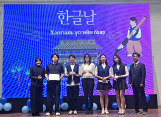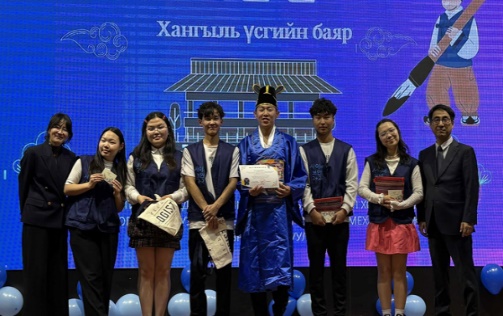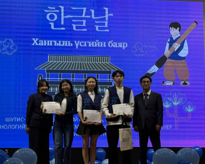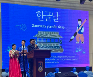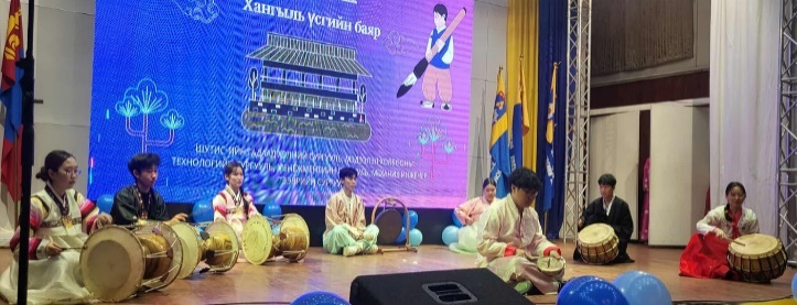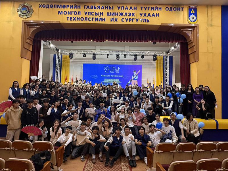 ГХС-ийн Ази судлалын тэнхимийн Солонгос хэлний баг солонгос хэл судалж буй ШУТИС-ийн оюутнуудад солонгос хэл соёлыг сурталчилж, солонгос хэл сурах хүсэл эрмэлзлэлийг хөгжөөх, оюутнуудын мэдлэг чадварыг сорьж, авьяасыг хөгжүүлэх зорилгоор 2025 оны 10 дугаар сарын 11-нд “Хангыль үсгийн баяр”-ыг 20 дахь жилдээ уламжлал болгон зохион байгууллаа. Уг баярт ГХС-ийн Гадаад хэлний орчуулга /Солонгос хэл/ мэргэжлээр сурч буй оюутнууд болон МХТС, МС, МИТС-ийн 2+2 хөтөлбөр, Ерөнхийлөгчийн илгээлт -2100 хөтөлбөрийн солонгос хэлний бэлтгэлийн анги, нийт 250 орчим оюутан, зөвлөх багш нарын хамт оролцлоо.