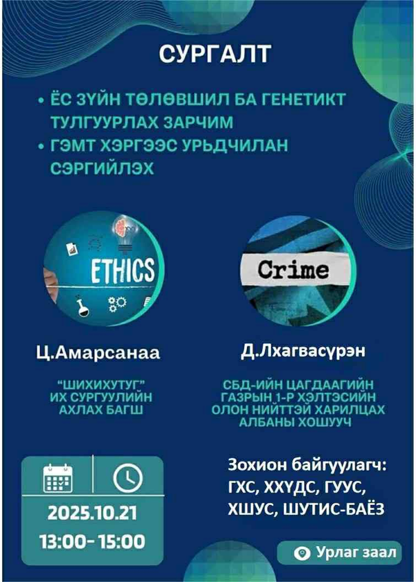 “ЁС ЗҮЙ”, “ГЭМТ ХЭРГЭЭС УРЬДЧИЛАН СЭРГИЙЛЭХ” ЛЕКЦ зохион байгуулагдлаа