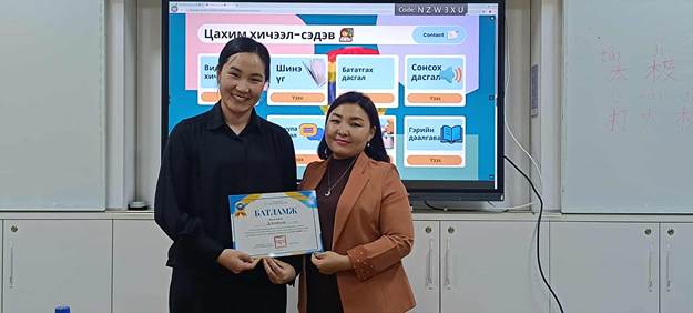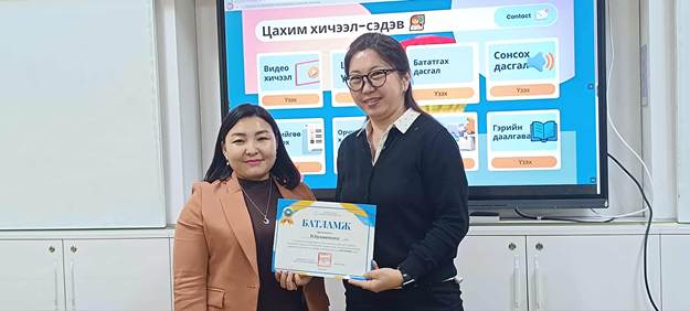 ГХС-ийн Цахим хичээл бэлтгэх ажилтай холбоотойгоор АСТ-ийн Л.Чойжилмаа, Л.Сарангэрэл, Д.Анхтуяа, Н.Булганчимэг багш нар “AI ашиглах интерактив хичээл бэлтгэх арга зүй” 2 модуль сургалтанд хамрагдаж батламж хүртлээ.