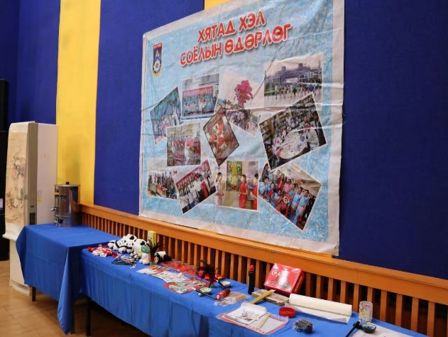 Өдөрлөгөөр ШУТИС-ийн хятад хэлний клубийн танилцуулга, Хятадын соёл, уламжлал тэр дундаа цайны соёл, уламжлалт хоол, амттан, үндэсний хувцас болон шатар, гар урлалын танилцуулгаас гадна ШУТИС-ийн хятад хэл суралцагч залуусын урлагийн үзүүлбэр уянгат дуу, шүлэг, уян налархай бүжиг, хийн дасгал болон танин мэдэхүйн асуулт, хариултын тэмцээн зохион явуулж, хэл соёлын нэгэн өдрийг хөгжилтэй, дурсамж дүүрэн өнгөрүүллээ.