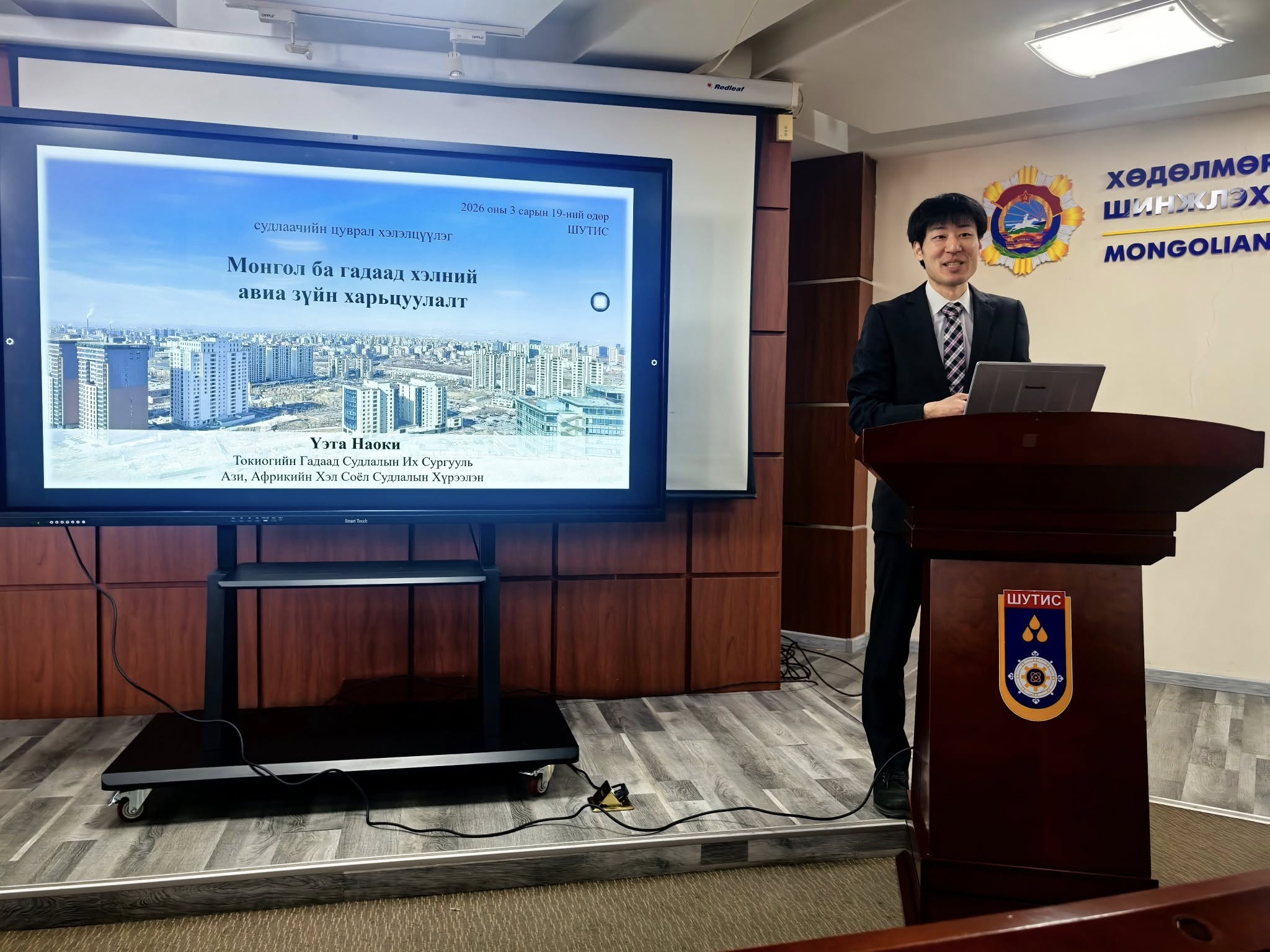 ГХС-ээс зохион байгуулдаг “Судлаачийн цуврал” хэлэлцүүлгийн хүрээнд 2026 оны 3 дугаар сарын 19-ний өдөр Токиогийн Гадаад Судлалын Их Сургуулийн Ази, Африкийн Хэл Соёл Судлалын Хүрээлэнгийн дэд профессор, доктор Үэта Наоки “Монгол ба гадаад хэлний авиа зүйн харьцуулалт” сэдвээр ГХС-ийн багш, оюутнуудад сонирхолтой лекц уншлаа.