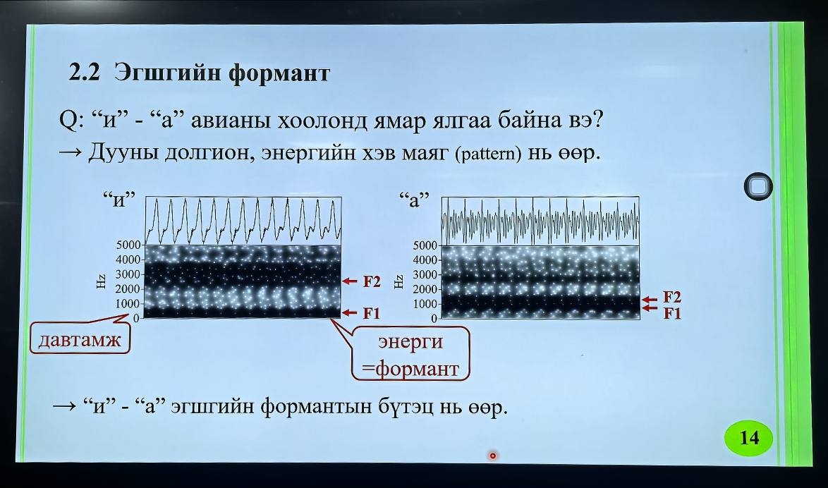 Тус лекцийн үеэр монгол хэлний авиаг япон, англи хэлний авиатай харьцуулсан судалгааны үр дүнг танилцуулж, авиа зүйн чиглэлээр шинэ мэдлэг, ойлголтыг оролцогчдод хүргэсэн ач холбогдолтой арга хэмжээ боллоо.