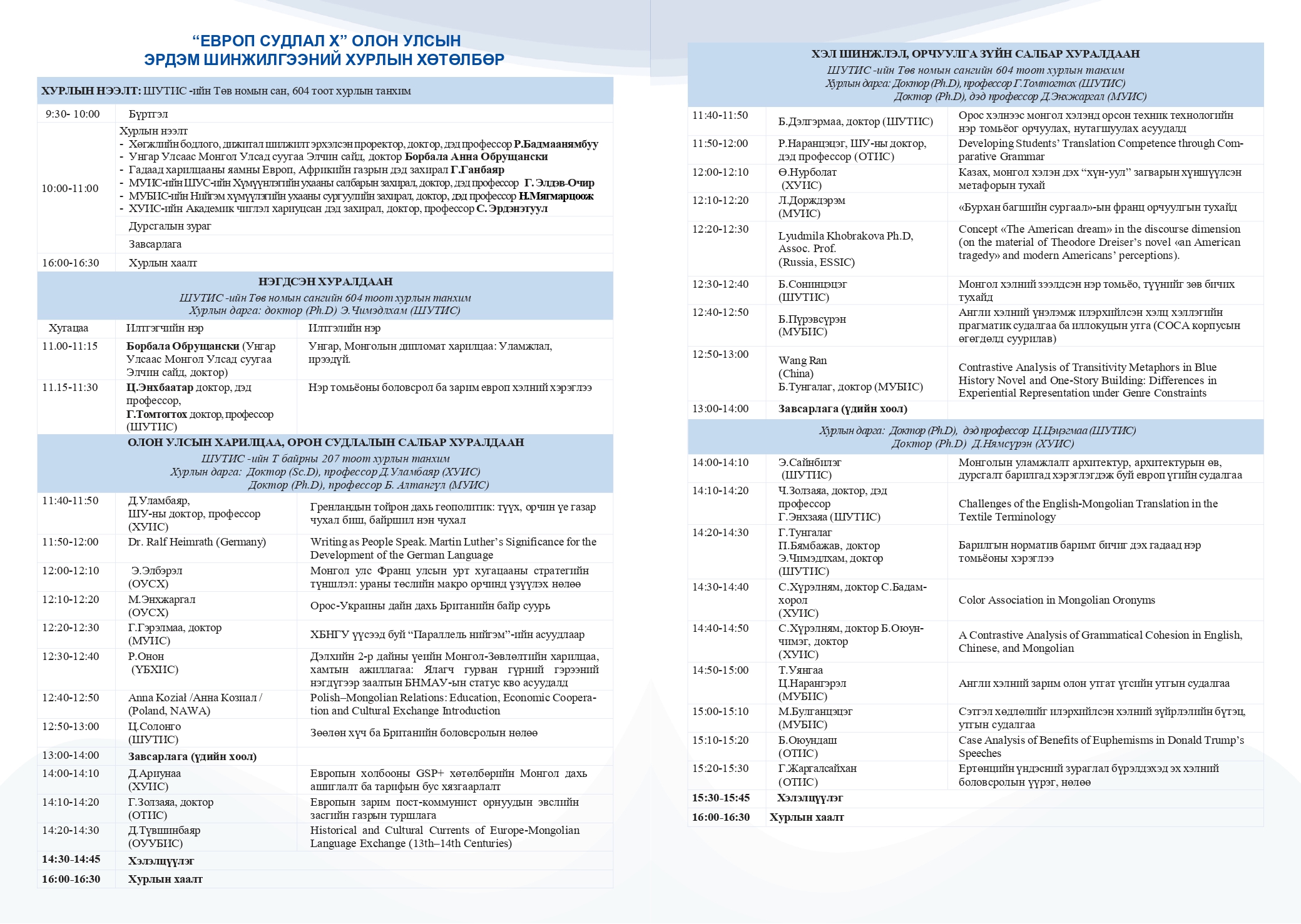 "Европ судлал X" ОУ-ын эрдэм шинжилгээний хурлын хөтөлбөр